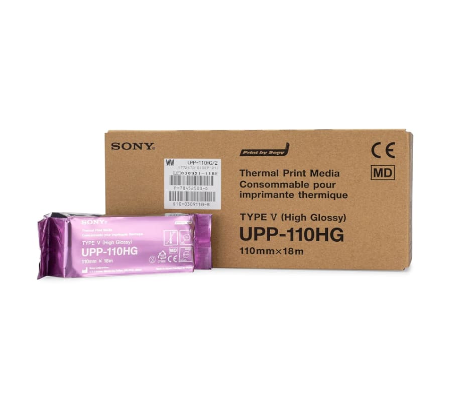 El Papel Sony Alta densidad UPP-110HG es un soporte de impresión de alto brillo en blanco y negro, de tamaño A6, específicamente diseñado para impresoras médicas de Sony como las UPX898MD, D898MD, D898DC, 897MD y D897. Este papel de impresión es ampliamente utilizado en aplicaciones de ultrasonido, proporcionando imágenes nítidas y de alta calidad, esenciales para diagnósticos médicos precisos.